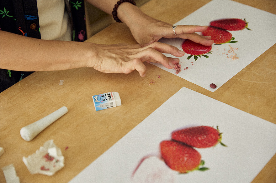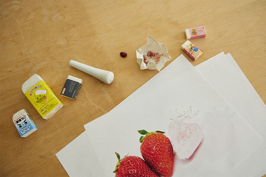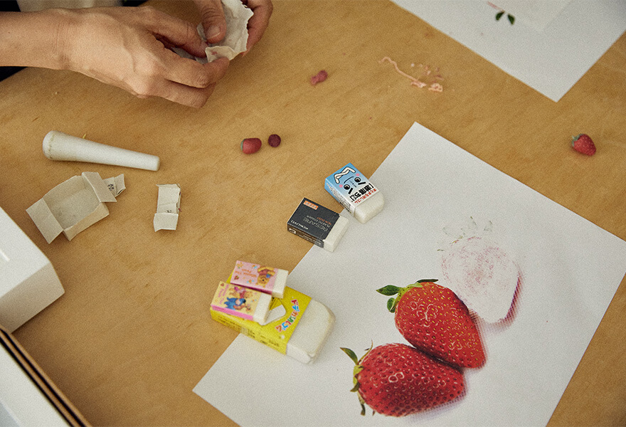 入江:はい。粘土で作品をつくったこともありましたが、消しゴムと消しカスのあいだにある「消えて、出てくる」という関係性に面白さを感じました。