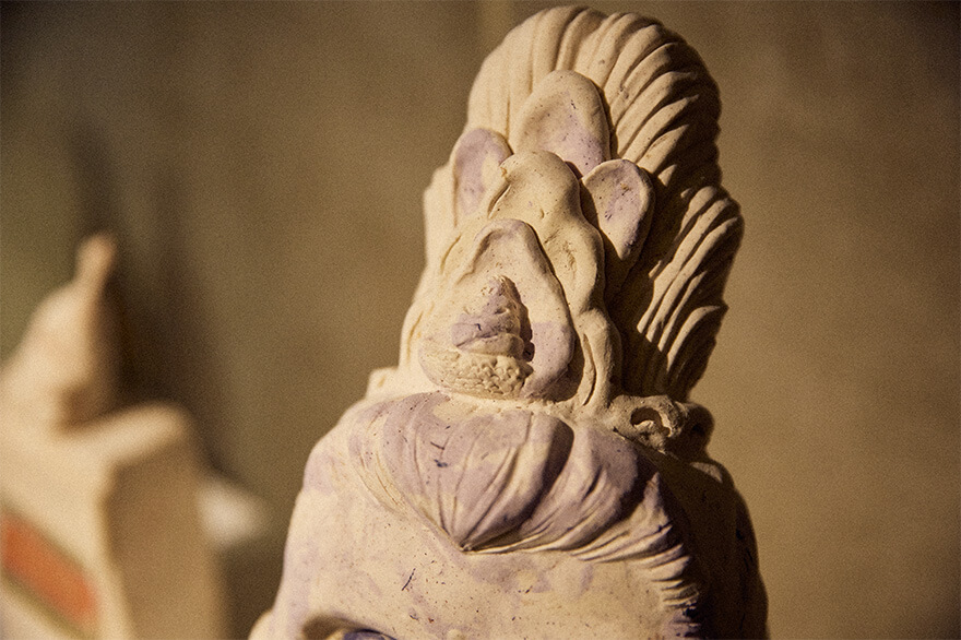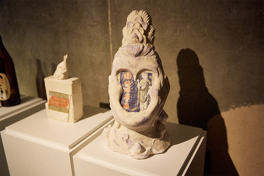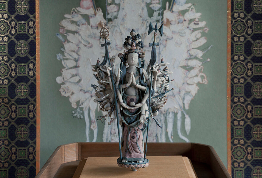 入江:よくモチーフにしているのは、「古いもの」ですね。たとえば、骨董屋さんで出会った、掛け軸に描かれた観音菩薩。それを現実世界に「召喚する」ような感覚で立体にしています。神様をお迎えするような気持ちです。