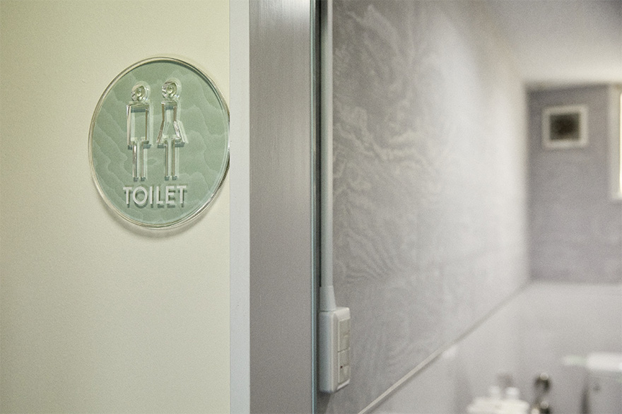 セイショク本社オフィスでも、NUNOUSを用いたトイレのピクトサインを採用
