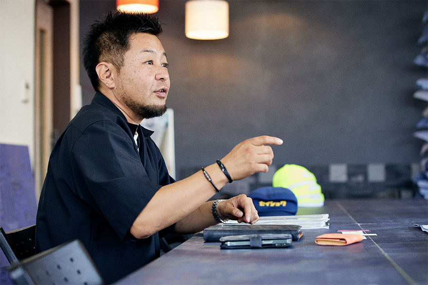 従業員の方が実際に愛用されてきた作業着が、オフィスの随所に活用されているというストーリーも相まって、とても喜んでいただけましたね。
