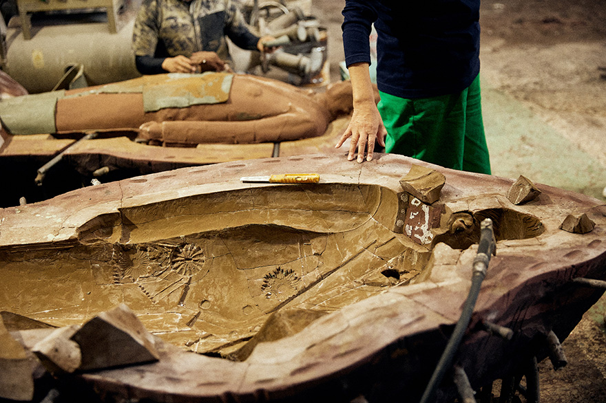 藤田さんが案内してくれたのは、大型の鋳物を製造する工場。著名な作家のアート作品、世界的企業のモニュメント、誰もが知る人気キャラクターや地方の名士の銅像まで、さまざまな製品・作品が作られています。