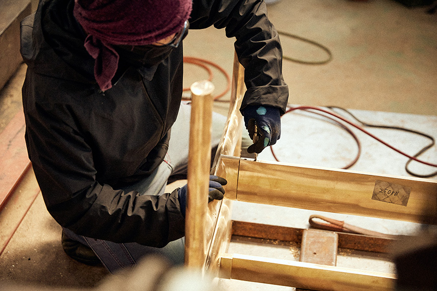 大きな作品の場合は複数のパーツに分けて鋳造し、組み立て作業も行う