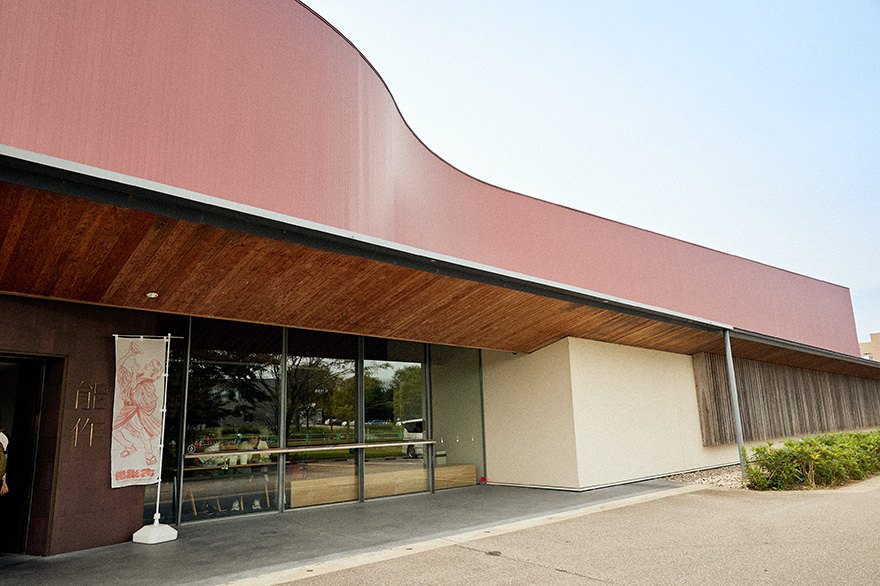 訪れたのは、2017年に建てられ、ギャラリー、カフェレストラン、ショップが併設された新工場。産業と観光を結びつける必要性を感じていた4代目社長が、産地全体の活性化のためにとオープンした施設です。