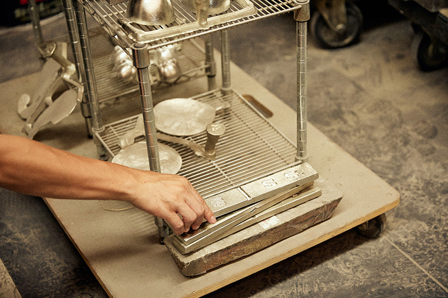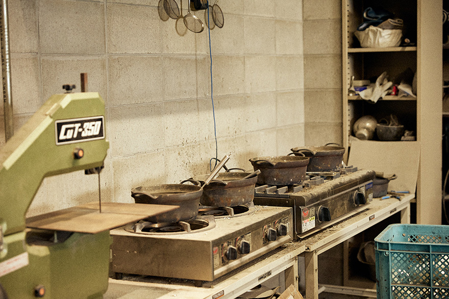 「能作では砂型の造形から鋳造、研磨までを自社工場内で行っています。ここから先は高岡市内の着色を専門とする職人さんに、綺麗な色や模様をつけていただくという流れですね」