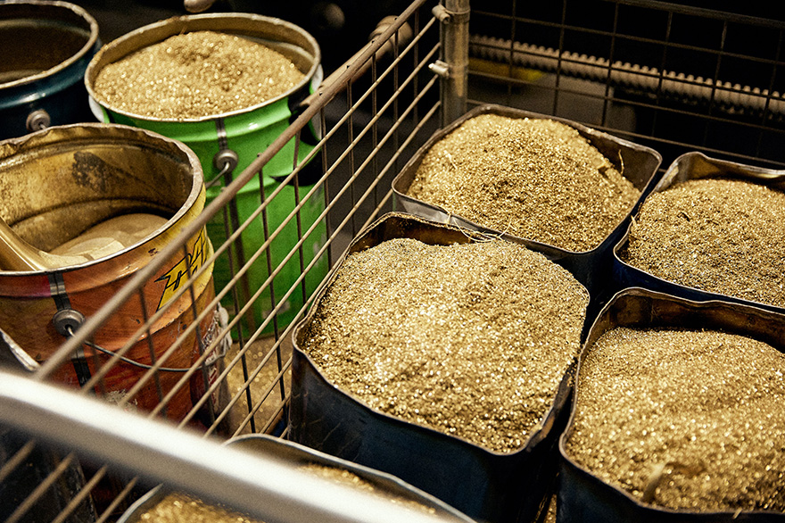 削る際に出た金属のカスは、もう一度溶かして再利用している
