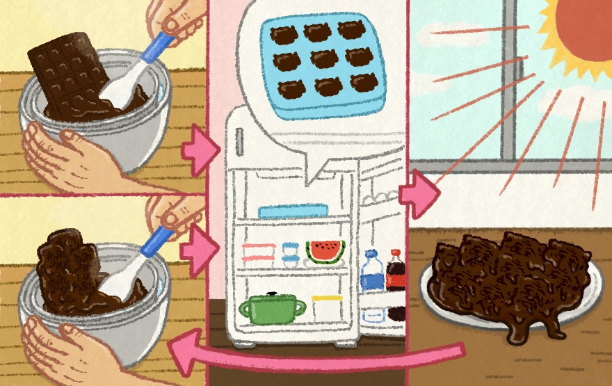 一方、チョコレート型とは、熱で溶かすと何度でも形を変えられるタイプ(熱可塑性樹脂)です。そして、PETをはじめとした、ほとんどのプラスチックはチョコレート型に分類されます。