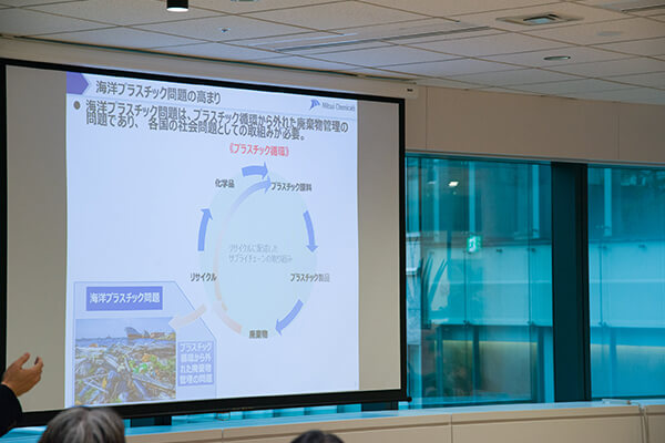まずはESG推進室より、リサイクル方法や代替資源の活用など、プラスチック製品をとりまく現在の状況についてお話がありました。