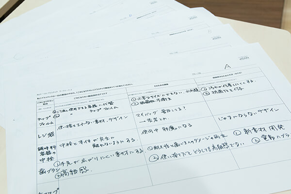 小島氏からは「同じようなワークショップを他のところでも行ってきましたが、プラスチックのプロの方々なので、一般の人が気づかないような点に着目されているなと感じました」とコメントがありました。